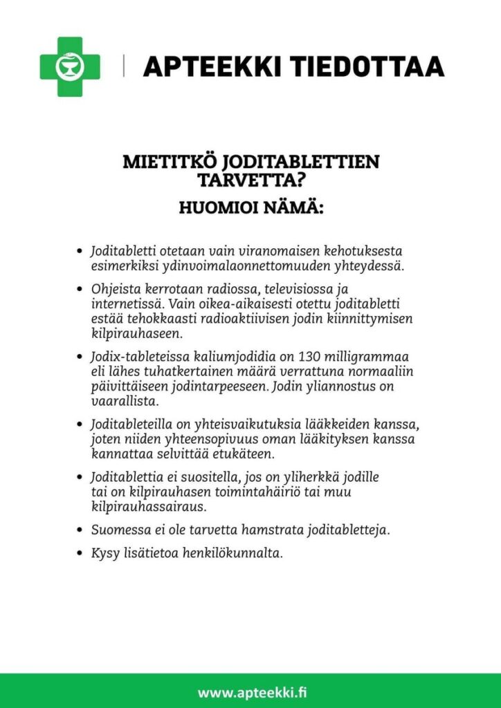 Apteekki tiedottaa joditablettien tarpeesta!