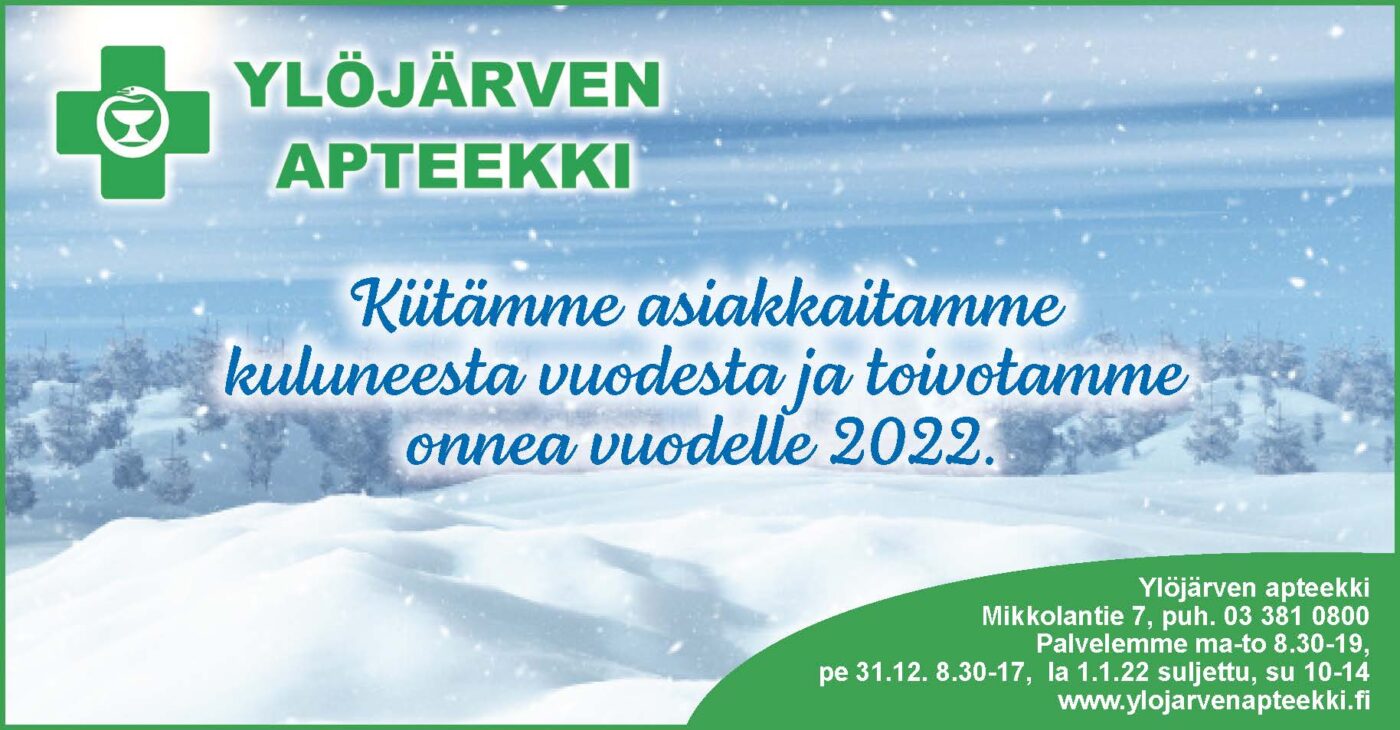 Uuden vuoden poikkeukset aukioloaikoihin: Uudenvuodenaatto 31.12.  (pe) klo 8.30 – 17, uudenvuodenpäivä 1.1.  (la) SULJETTU ja loppiainen 6.1.  (to) SULJETTU